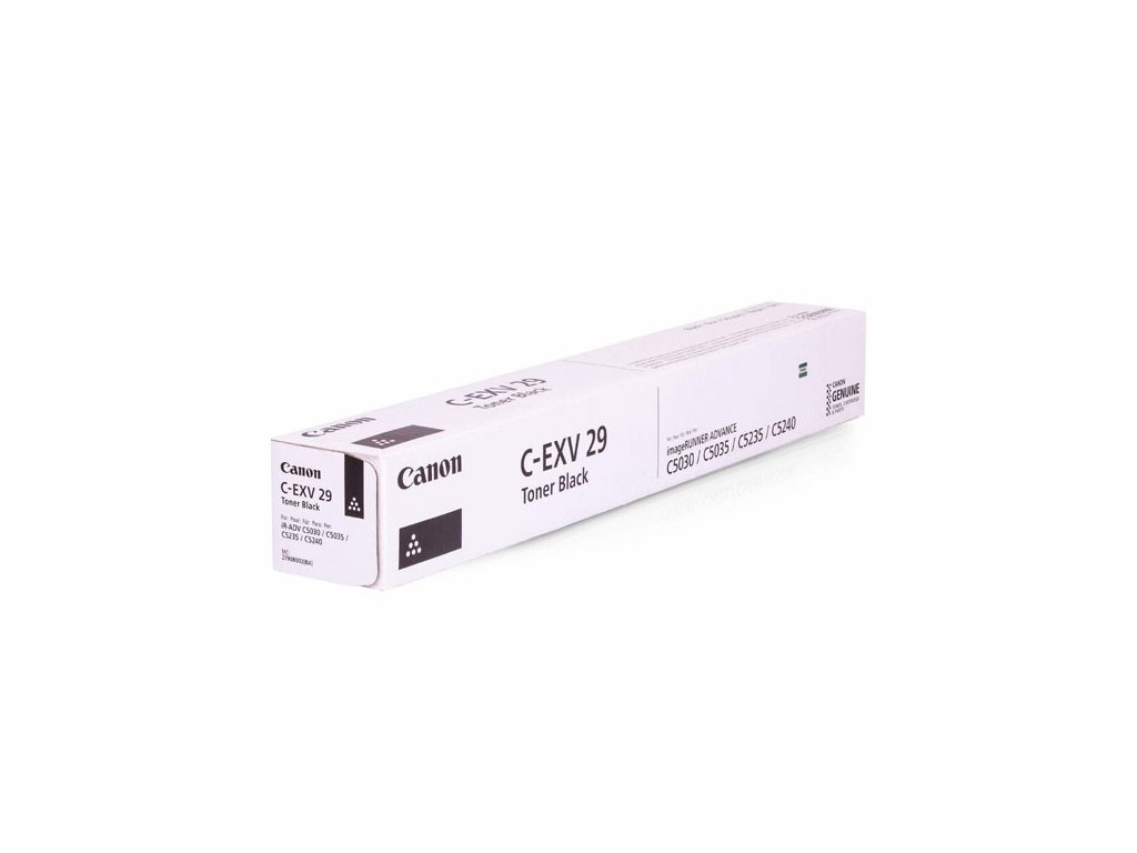 Vytvárajte pôsobivé dokumenty s dlhou životnosťou a tlačte kvalitne a s vysokým výkonom na svojej tlačiarni Canon pomocou originálneho toneru Canon C-EXV29 BK, ktorý bude celkom kompatibilný s vašou tlačiarňou.