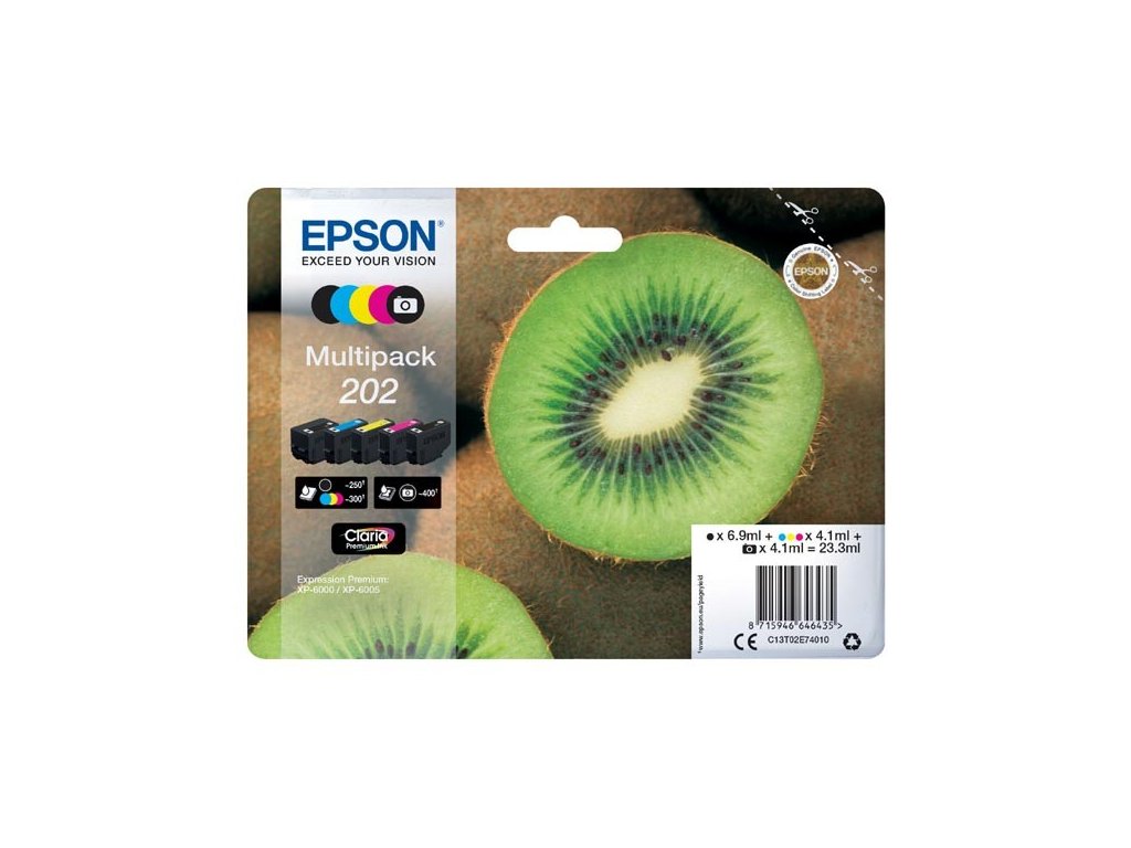 Epson originál ink C13T02E74010, 202, CMYK, 250 (čb)/300 (bar.)str., 1x6.9ml, 4x4.1ml