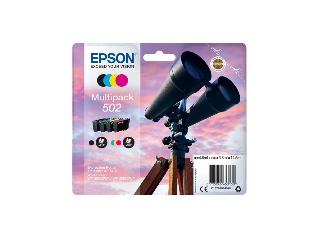 Epson originál ink C13T02V64010, 502, T02V640, CMYK, 550str., 3x3.3/4.6ml